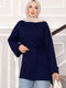 NameOysho Tunic with Folded Sleeves and Belt, Navy Blue