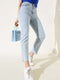 Cut-Slim Leg Stoned Jeans Light Snow