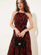 | Name | Zebra Pattern Neck Tie Sleeveless Dress Brown |