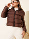 Stand-up Collar Zip-Up Short Puffer Jacket, Brown