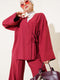 Side Rope Tied Kimono Two Piece Set Claret Red