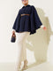 | Name | Shirt Collar Belted Poncho Navy Blue |