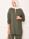 Half Zippered Two Piece Suit Khaki with Sprinkled Stones