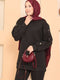 Slit and Snap Detailed Hijab Two Piece Set Black