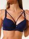Padded Cross-String Ribbon Micro Bra Navy Blue