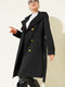 One Shoulder Epaulette Double Breasted Trench Coat Black