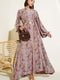 | Name | Patterned Dress with Elastic Sleeves, Brown |