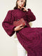 Glitter Bearded Balloon Sleeve Belted Dress Plum