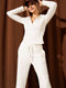Loysa Two-Piece Set with Piped Zipper, Ecru