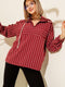 | Name | Striped Shirt with Zipper Collar, Burgundy |