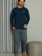 NameLong Sleeve Buttoned Plaid Men's Pajama Set Indigo