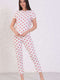 Patterned Crew Neck Pajama Set White Heart Pattern