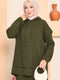 Hooded Sweater Detailed Hijab Two-Piece Dress Set Khaki
