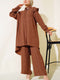 Shoulder Ruffled Linen Two-Piece Set Coffee