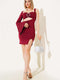 Low-Cut Mini Dress with Chest Accessory, Burgundy