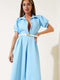 | Name | Shirt Collar Belted Short Sleeve Jumpsuit Blue |
