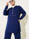 Loyşa Half Zippered Stoned Two Piece Suit Navy Blue