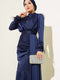 | Name | Pleated Feathered Cuff Dress Navy Blue |