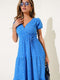 Polka Dot Elastic Waist V-Neck Midi Dress Blue