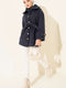 Chaqueta de fieltro con cuello camisero y botones, color azul marino.