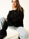 Cárdigan de punto con ribete de piel y botones en forma de corazón, color negro