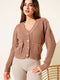 Cárdigan corto de punto Thessaloniki con dos bolsillos color café con leche