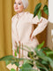 Traje de falda de rayas con lazo en la parte delantera en color beige