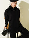 Ensemble deux pièces en maille à fermeture éclair et col en fourrure, noir