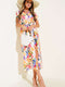 Robe midi jaune à boutons et à motifs