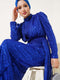 Robe de soirée zippée à paillettes et ceinture bleu saxon