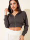 Gilet court à capuche zippé, gris foncé