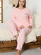 Ensemble pyjama grande taille à côtes et motif floral, rose pâle
