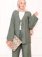 Ensemble pantalon deux pièces kaki avec détails en dentelle sur le devant