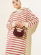 | Name | Robe décontractée rayée bordeaux à demi-zip |