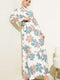 | Name | Robe crêpe à taille élastique et motif feuilles, couleur menthe |