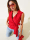 | Name | Chemisier à col chemise et lien latéral, rouge |