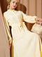 Robe longue jaune à col grand-père et boutons cachés