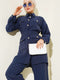 Costume deux pièces bleu marine à boutons métalliques et ceinture