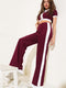 Ensemble deux pièces bordeaux : débardeur court à manches courtes et boutons métalliques