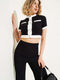 Ensemble deux pièces noir : débardeur court à manches courtes et boutons métalliques