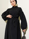 | Name | Robe Terikoton noire à manches ballon et demi-fermeture éclair |
