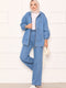 Ensemble en jean à capuche et poche kangourou zippée, bleu