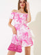 Combinaison short imprimée numérique fuchsia