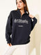 Sweat-shirt bleu marine à fermeture éclair avec texte brodé et tissu brossé