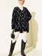 Gilet à rayures à poches et motif baklava, noir et blanc.