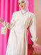 Robe ceinturée à texture froissée beige