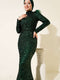 Robe de soirée à paillettes et épaules en plumes, vert émeraude