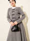 Ensemble deux pièces en velours côtelé et cachemire gris, confectionné en Grande-Bretagne.