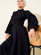 | Name | Robe de soirée bleu marine à manches plissées et ceinture |