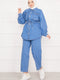 Costume en jean bleu avec hijab et poches détaillées et taille nouée